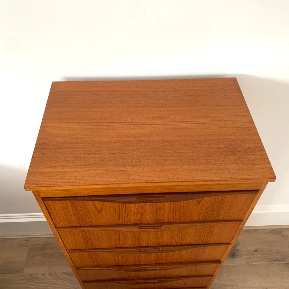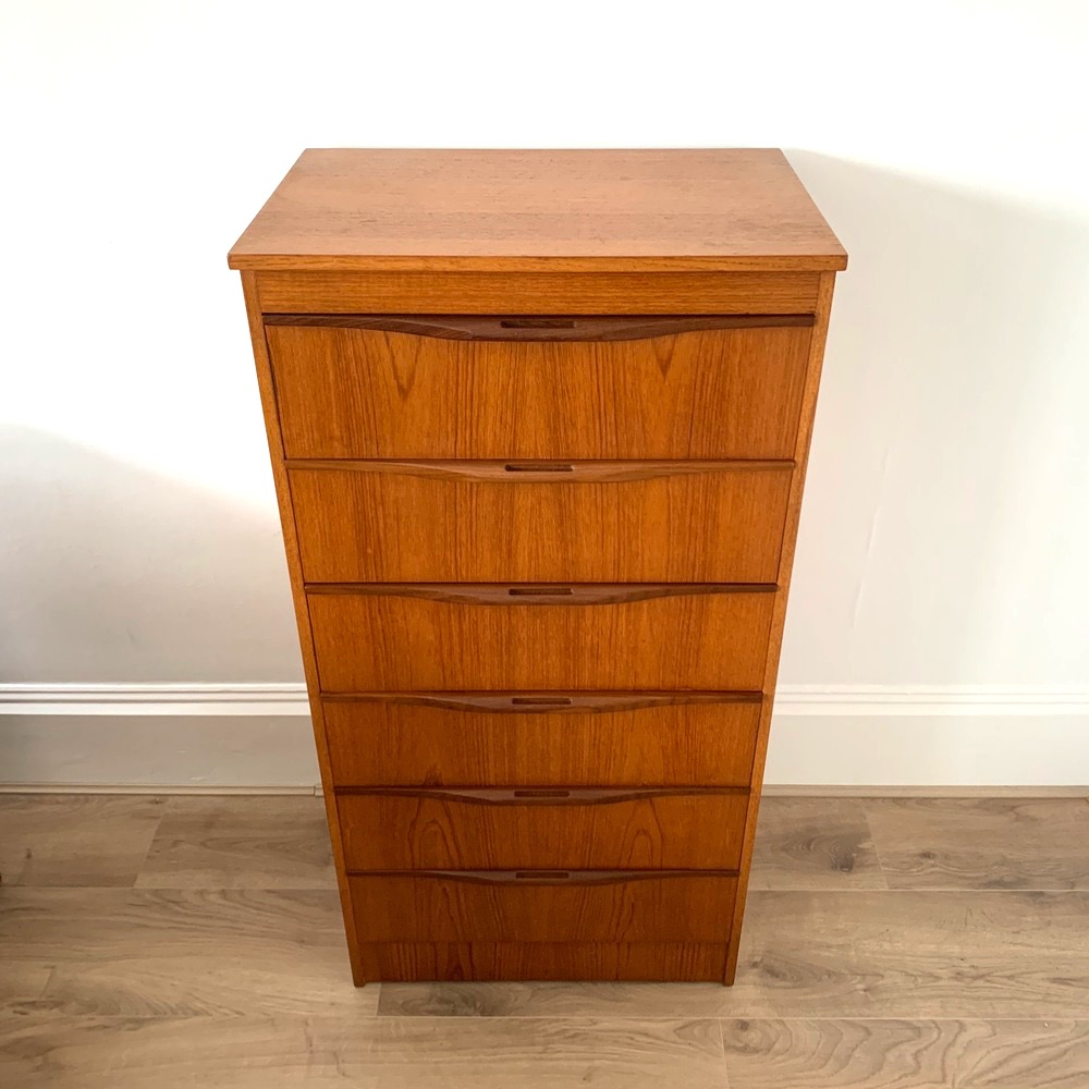 Danish style teak chest of six drawers