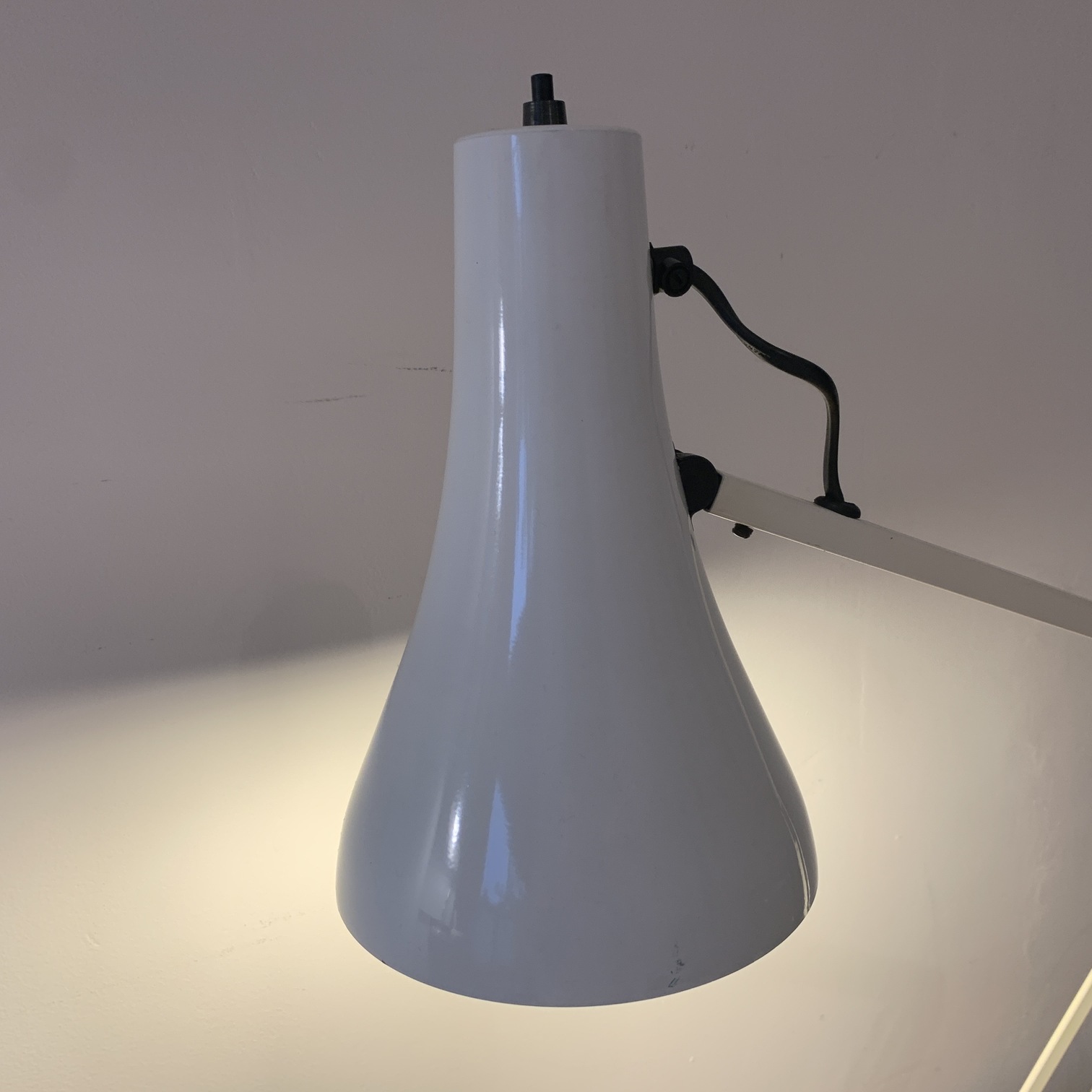 An original vintage mid century white Anglepoise Apex 90 desk lamp. Modified by the company over the years, the Apex 90 replaced the original 1227 Anglepoise lamp, designed by George Carwardine, after they stopped producing this model for a time in 1968. Excellent Condition