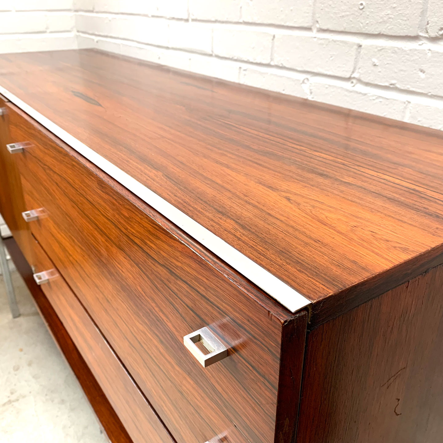 Rosewood Drinks Cabinet / Sideboard, raised on Chrome frame.